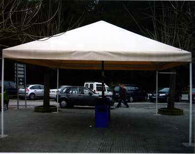 Con forma de Pirámide, los Cenadores Cuadrados se definen por la sencillez de sus líneas que componen un armónico conjunto con un agradable sensación de equilibrio. La lona transmitirá la luz o intimidad deseada. El fácil montaje del armazón y la lona le motivará a decidirse por él. Medidas Max: 400 x 400 cm